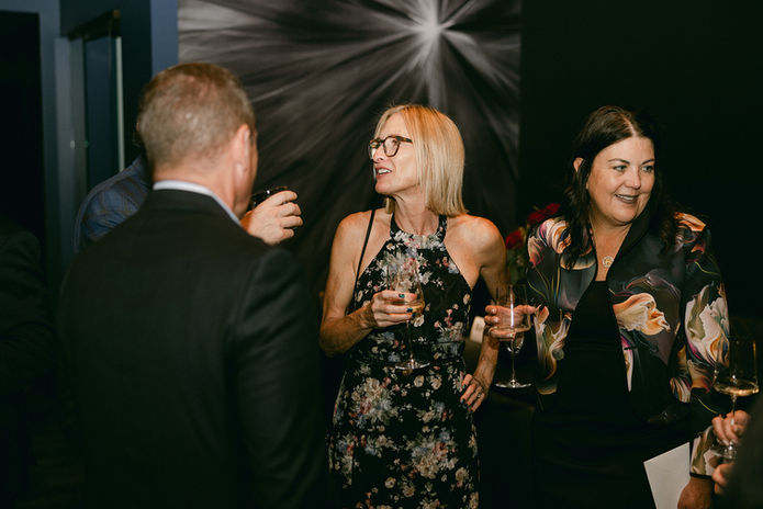 At Jewell on Capitol, guests immerse themselves in an artful ambiance that effortlessly merges traditional charm with sleek modern design. The sculptural stage backdrop, featuring "jewel-cut" walnut veneer, diffuses and scatters sound, while color-changing LED lights above set the mood for your special event.